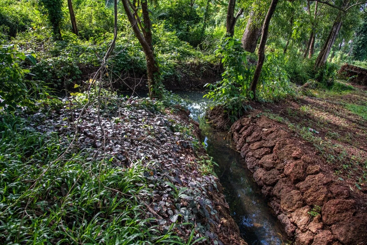 Responding to the site conditions, the three pavilions are designed around the key natural features of the site that were retained, enhanced and became the starting point for our design process. All three pavilions are centered around the seasonal pond. The main house and guest annex pavilions are connected and planned around a large ancient Kokum tree that existed on the site. The recreation block pavilion is set within the coconut grove.