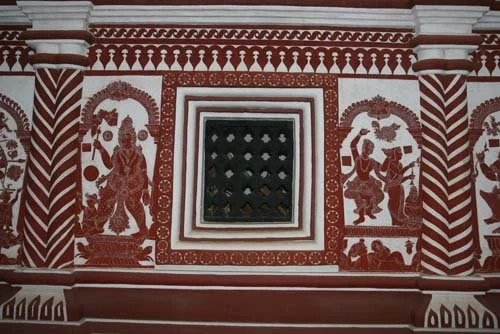 The red colour carries several associations. It connects to the earth, to laterite stone, and to ritual symbolism where red often represents fertility, strength, and protection. In temple architecture the colour also visually anchors the building to its landscape.