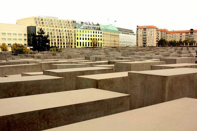 Eisenman's Holocaust Museum in Berlin with Gehry's DZ Bank building in the background