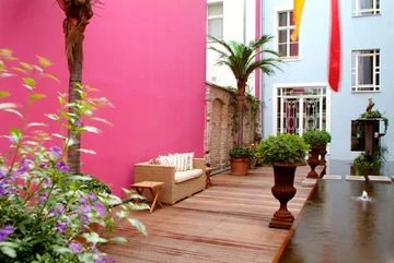Bali inspired courtyard at Boutique Hotel Ackselhaus housed in a historic building in Prenzlauer Berg, Berlin